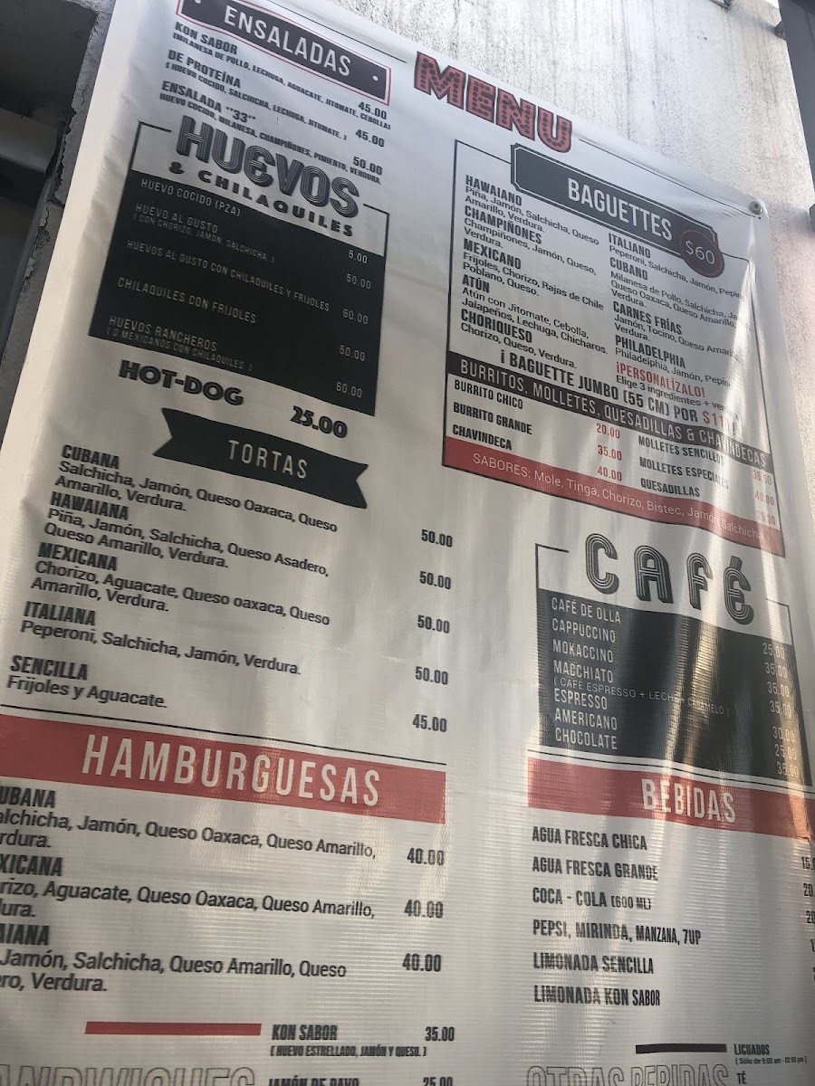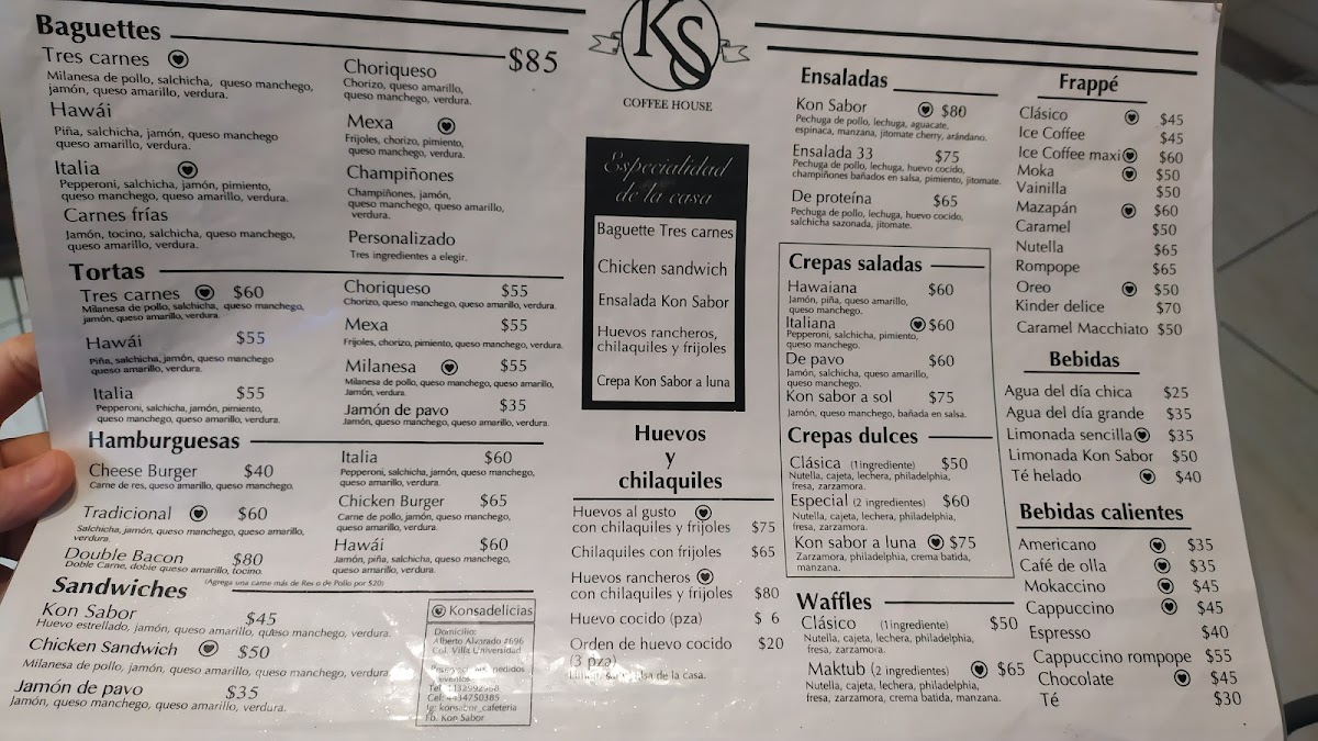 But the delights don't stop there. Their chicken option tantalizes with a fresh combination of flavors, featuring crispy lettuce and savory ham. Pair your meal with one of their irresistible frappes, like the Frappe Rompope, or the rich and creamy Frappe Mazapan, and you have a culinary experience that is both satisfying and refreshing.